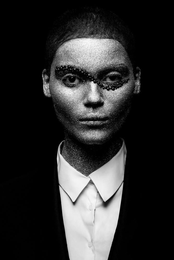 The next day Gautier continued with his project “New Humans”, a lot of these androgyny photographs, show selfish, stylish and bizarre humans and were published on 1x already. It’s about our society today, where the successful change character and interests. They lose empathy for their surrounding, become cold, beautiful - but empty, busy only with themselves and keeping on the track of success. The works for Gautier’s projects often have some stylish aspect, because that’s all “New Humans” strive for, coolness and beauty.